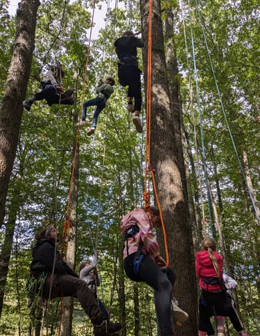 -Des techniques de cordes éphémères qui permettent une approche douce et non impactante pour la physiologie de l'arbre et son environnement.